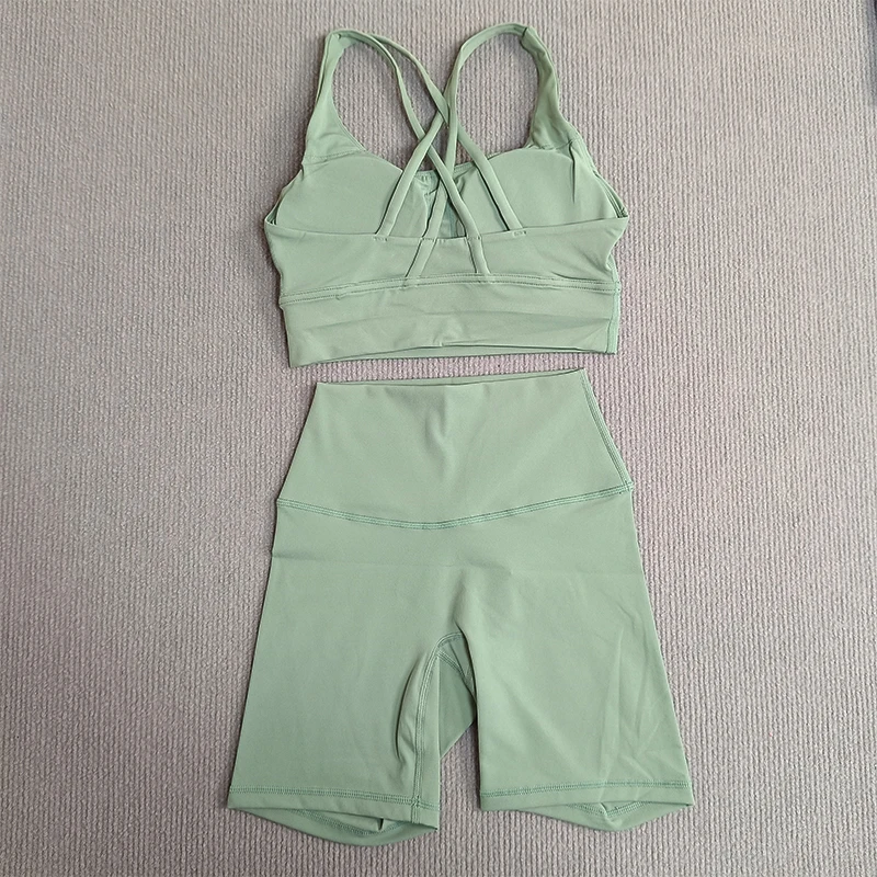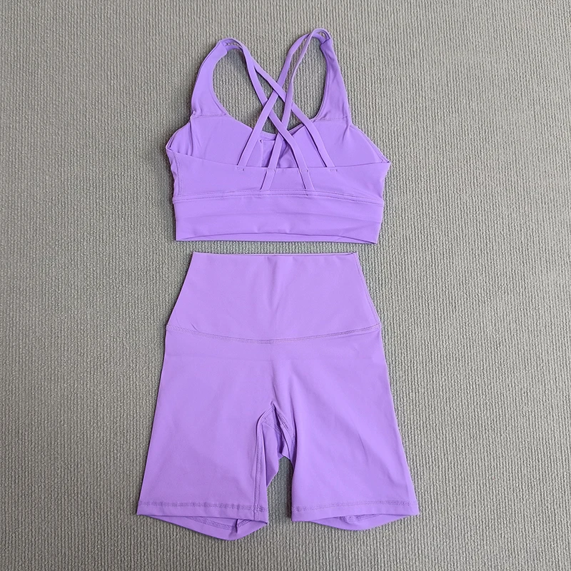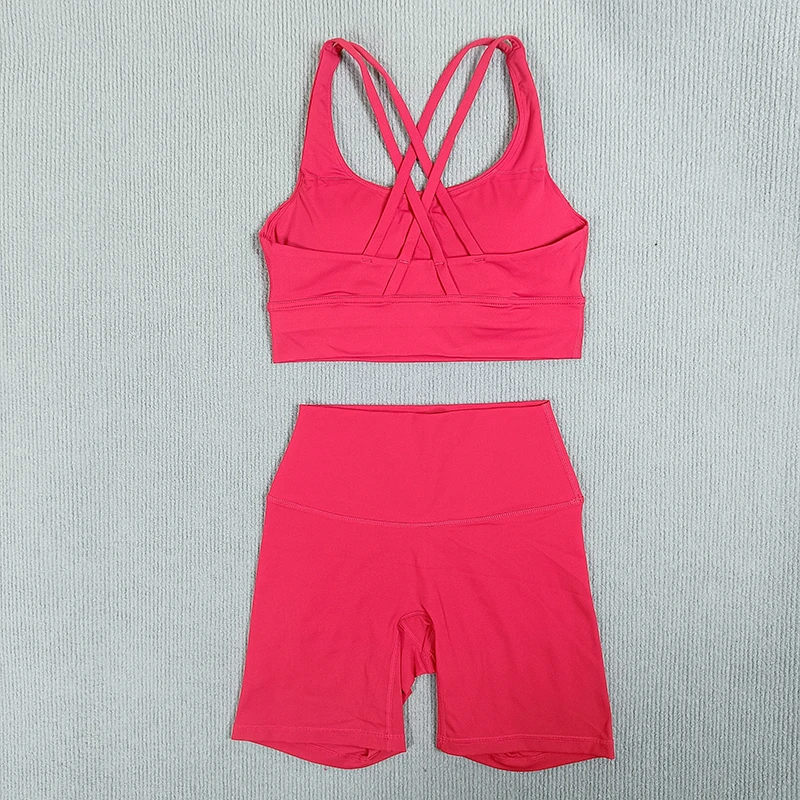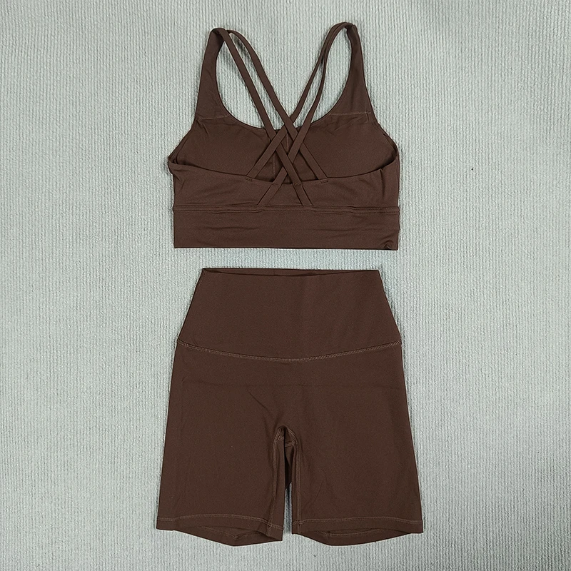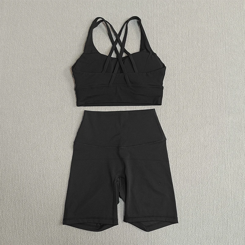 Featuring a cross back bra top and high-waist shorts, this 2-piece set is perfect for yoga, fitness, and running.