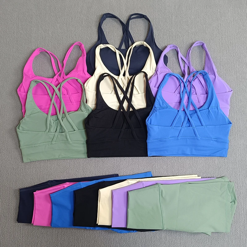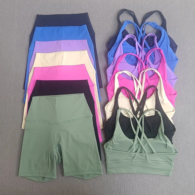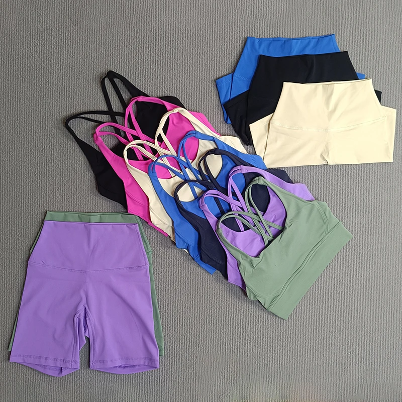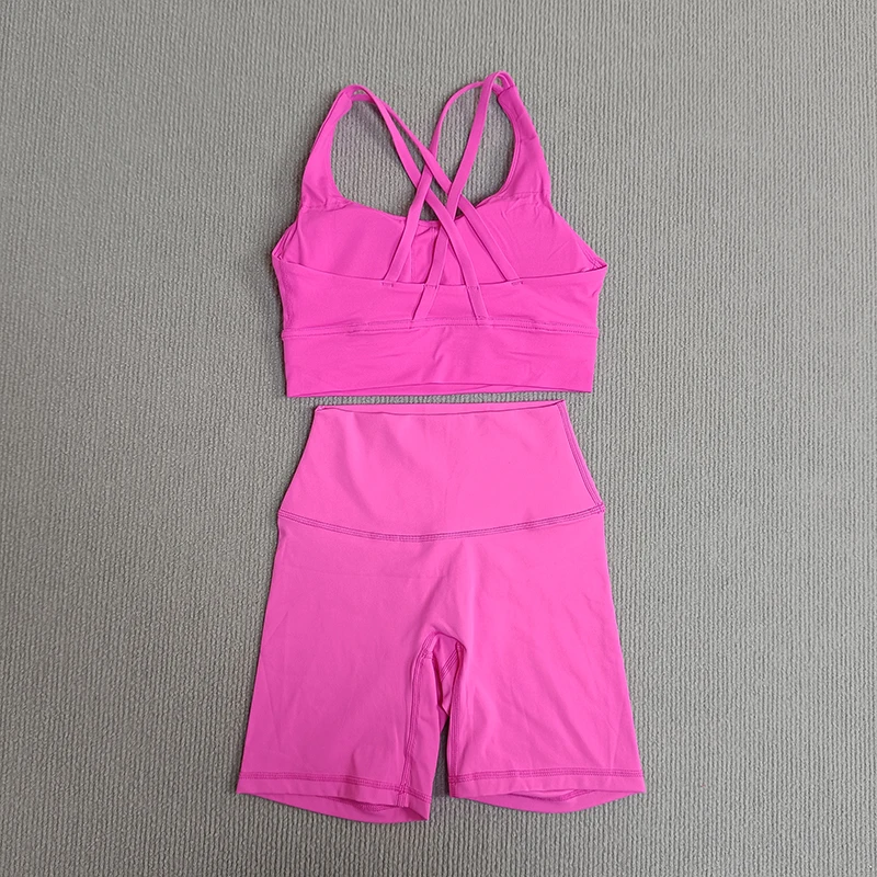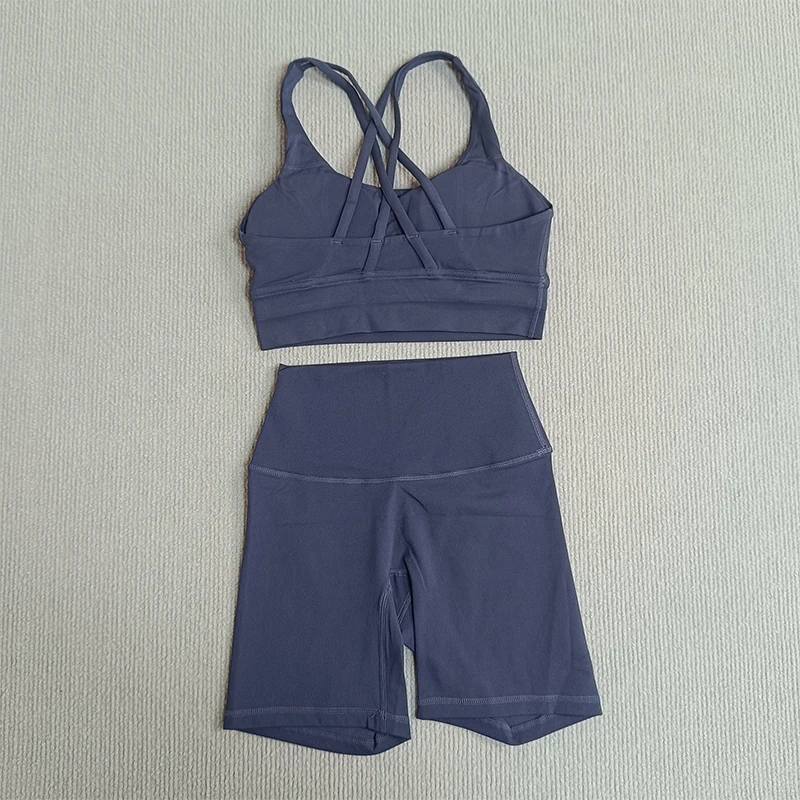 Featuring a cross back bra top and high-waist shorts, this 2-piece set is perfect for yoga, fitness, and running.
